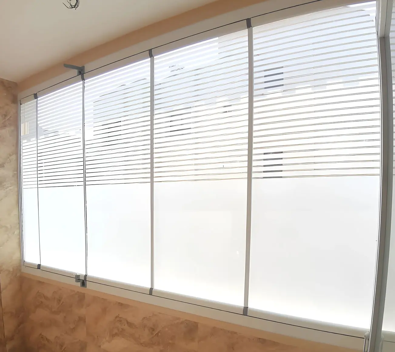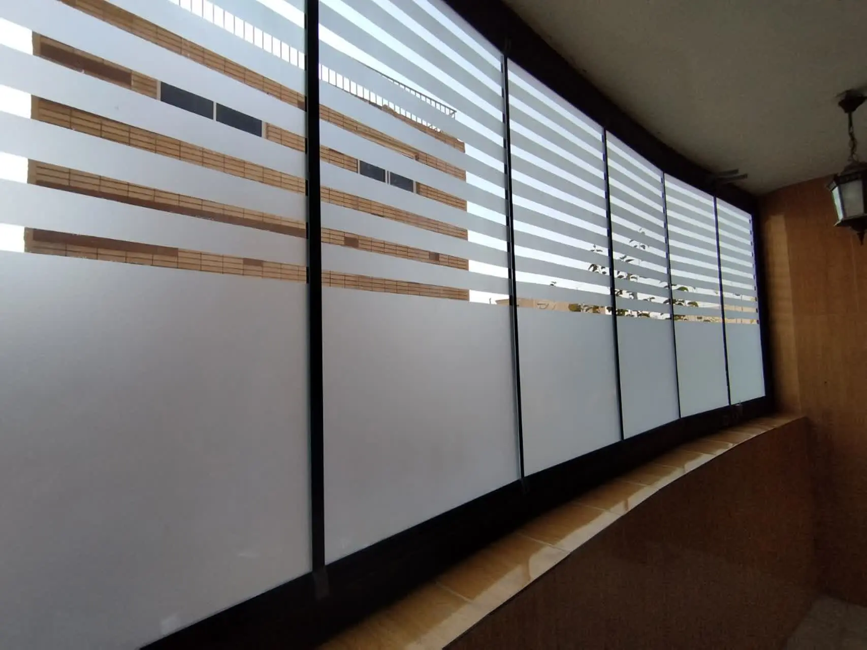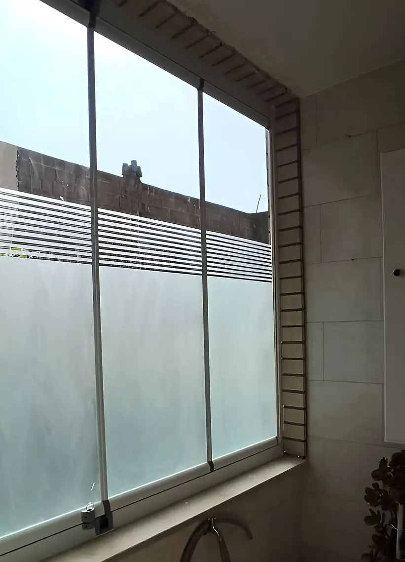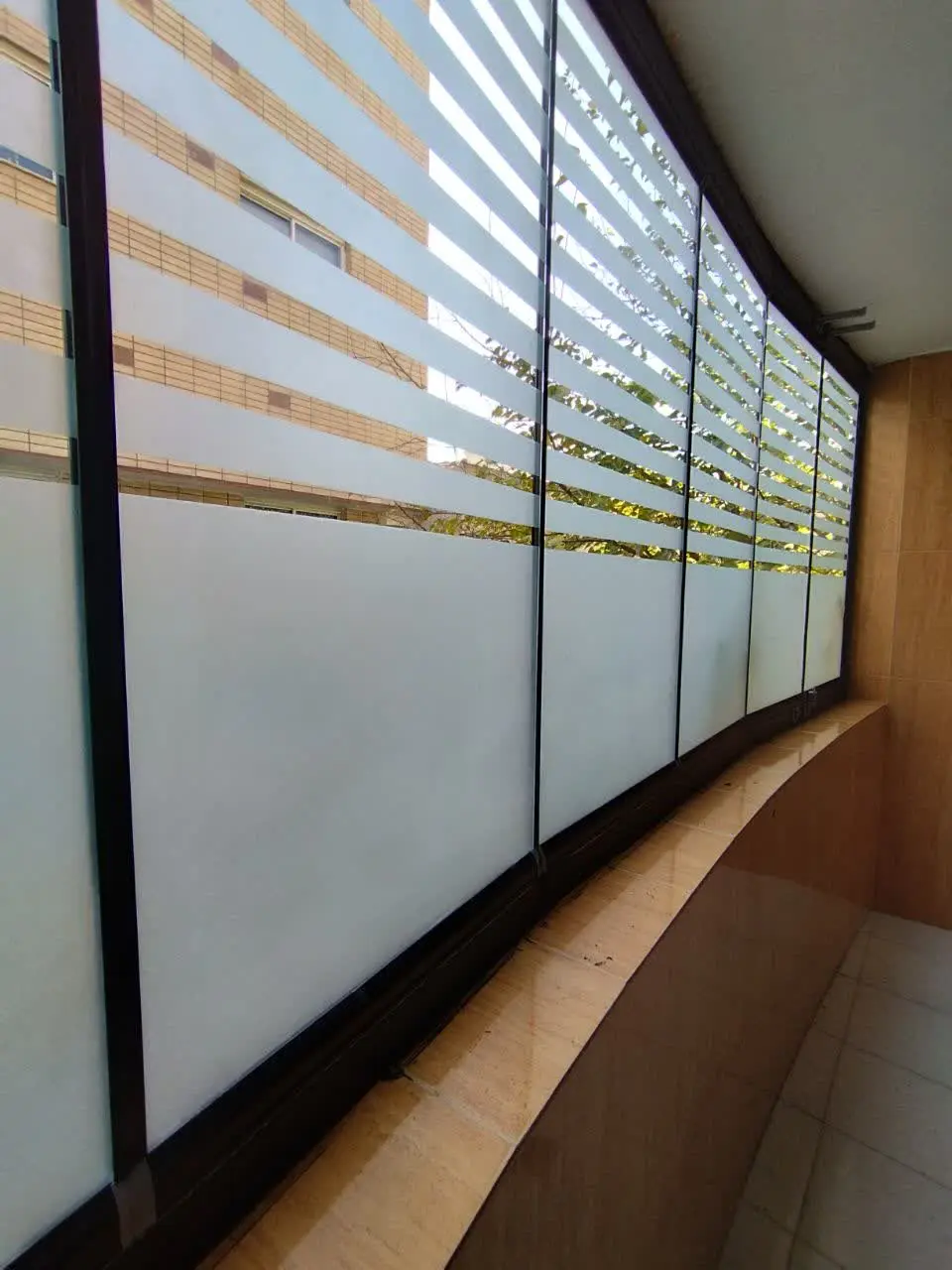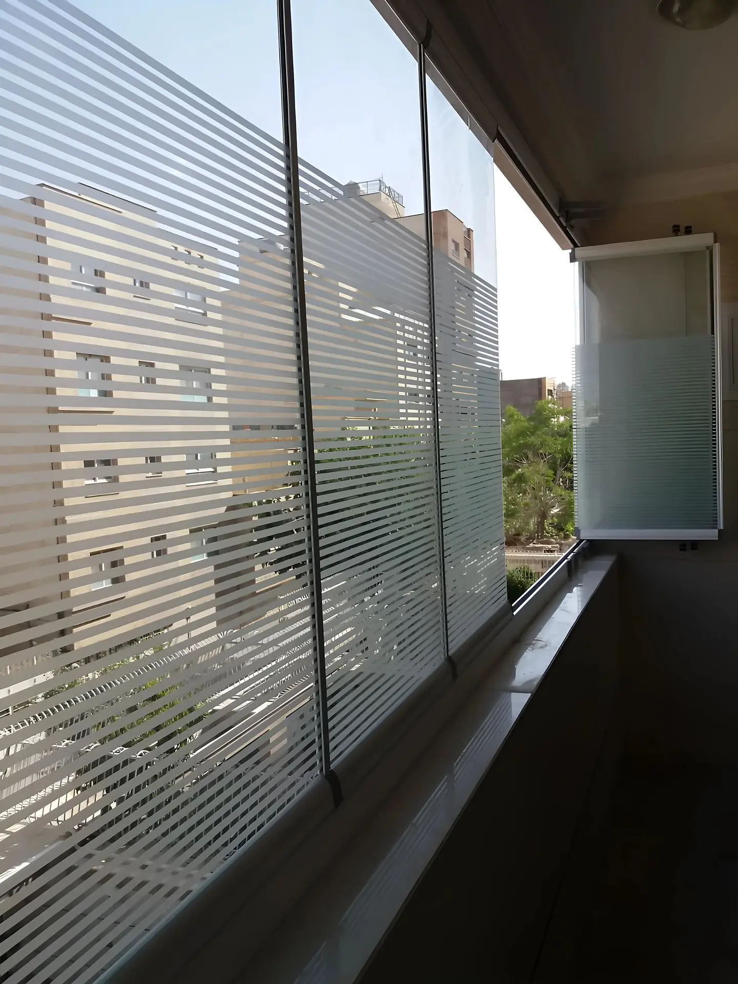 انواع سندبلاست نیمه مات-نیمه خط روی شیشه بالکن جی سان
