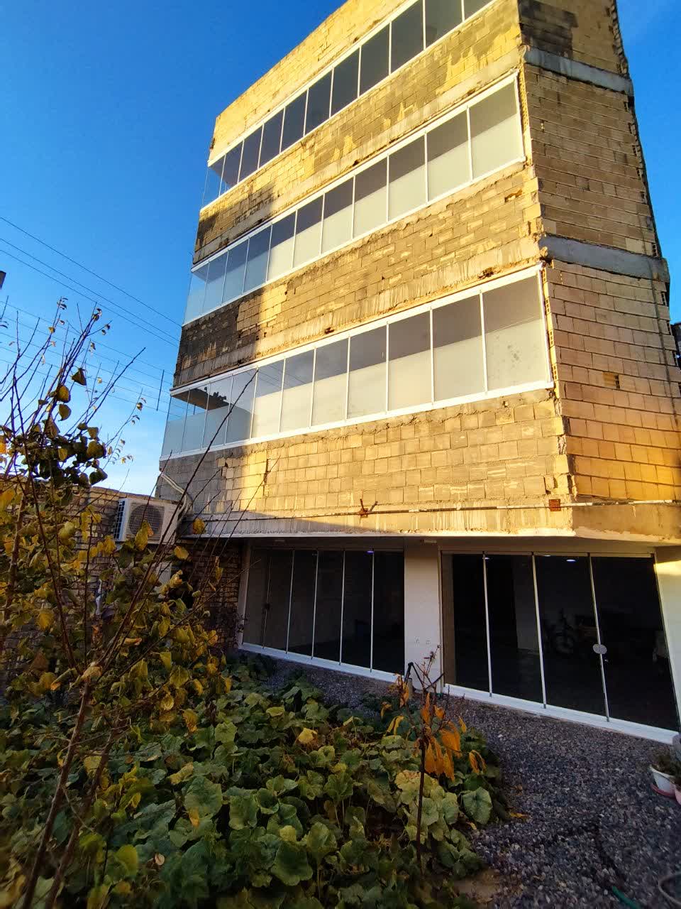 سندبلاست تمام خط روی شیشه بالکن جی سان