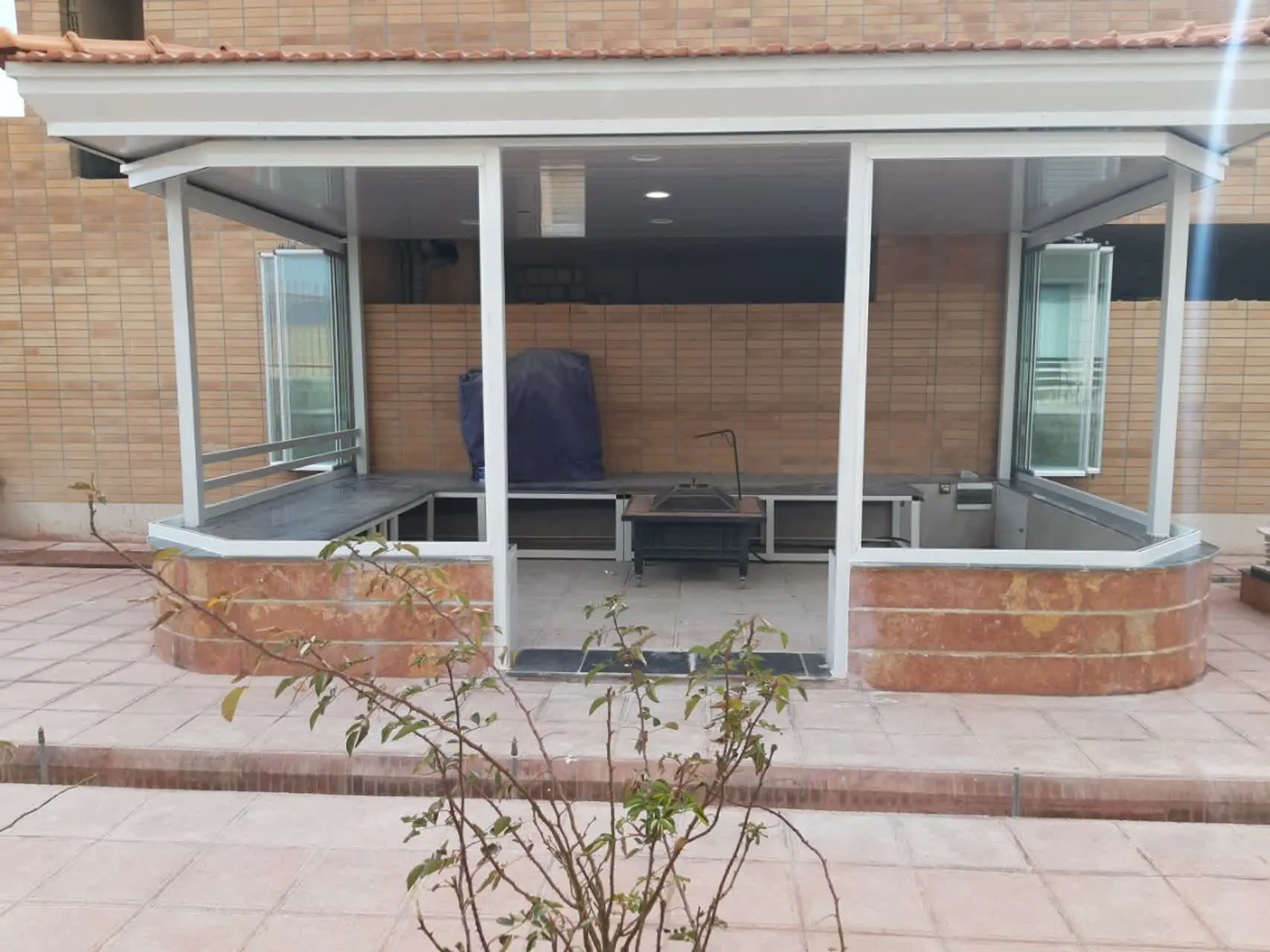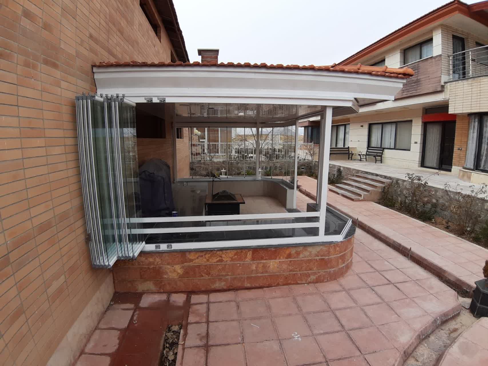 اجرای آلاچیق شفاف پیش ساخته با شیشه تاشو جی سان